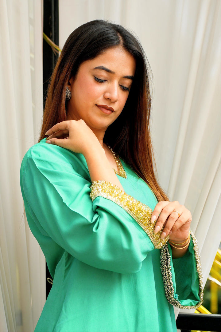 Step into effortless elegance with our Lime Muslin Viscose Kurta Set, a perfect blend of festive charm and modern comfort.