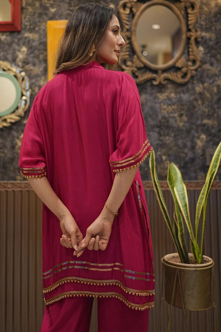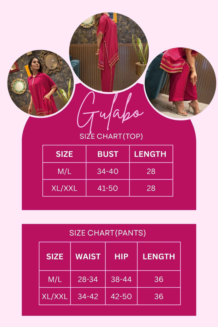 Step into the spotlight this festive season with our Guldasta Coord Set — Gulabo, a graceful kaftan-style ensemble crafted in luxuriously soft muslin viscose. This vibrant coord set blends timeless elegance with contemporary comfort, making it perfect for celebrations, gatherings, or a touch of everyday glamour.