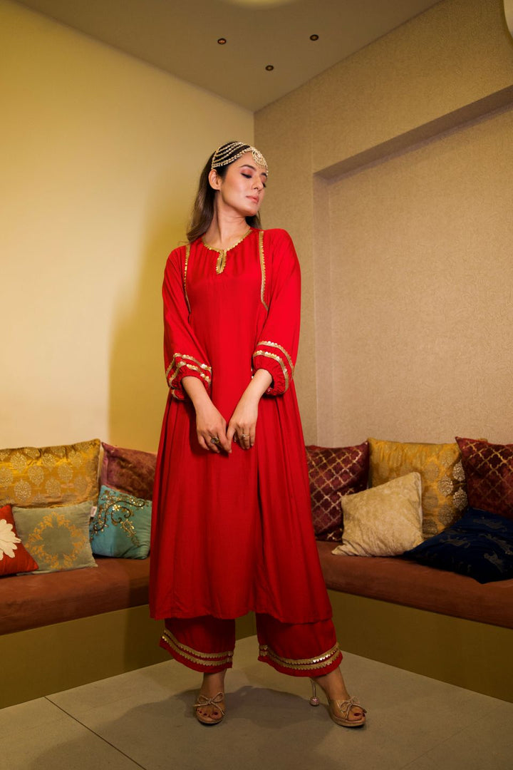 - Top Type: Flared kurta with gold lace detailing along the hem & sleeves