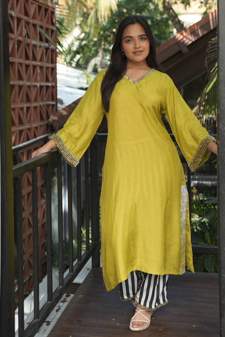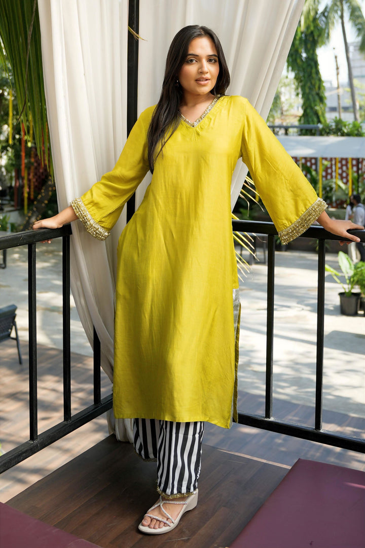 Step into effortless elegance with our Lime Muslin Viscose Kurta Set, a perfect blend of festive charm and modern comfort.